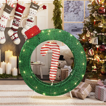 - Candy cane lighted wreath outdoor christmas decoration, 1.9 ft tall+sp.priceRaw ? 'price price--on-sale' : 'price'">