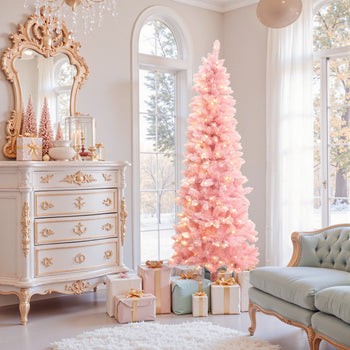 - Pink Pencil Artificial Tree with Warm White Lights, 6ft+sp.priceRaw ? 'price price--on-sale' : 'price'">