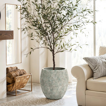 Sold out - Sea gray ripples glazed tall ceramic planter, 17" h+sp.priceRaw ? 'price price--on-sale' : 'price'">