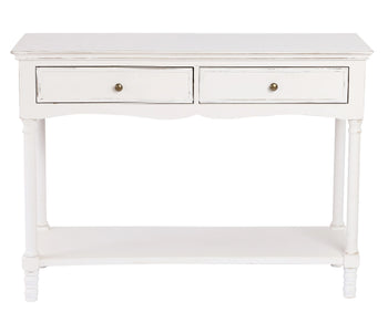 Sold out - Distressed White Wood 2-Drawer 1-Shelf Console and Entry Table+sp.priceRaw ? 'price price--on-sale' : 'price'">