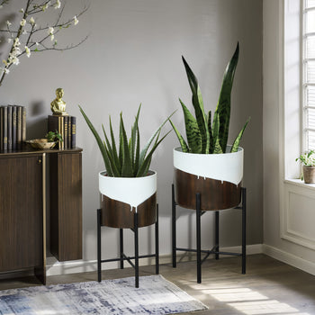 Sold out - White and brown metal indoor planters with stand, set of 2+sp.priceRaw ? 'price price--on-sale' : 'price'">