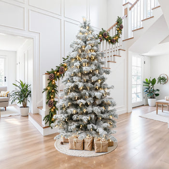 Sold out - 7.5Ft Pre-Lit Snow-Flocked PVC Artificial Christmas Tree, Indoor & Outdoor+sp.priceRaw ? 'price price--on-sale' : 'price'">