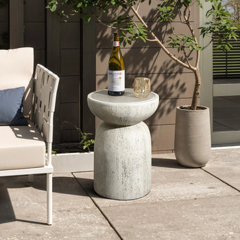 - Concrete Outdoor Side Table with Rustic Drum Shape 21.3"H+sp.priceRaw ? 'price price--on-sale' : 'price'">