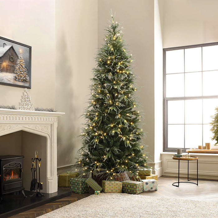 This 7.5ft Pre-Lit Artificial Christmas Tree. Combining lush branches ,frosted tips evoke the gentle beauty of fresh winter snowfall.