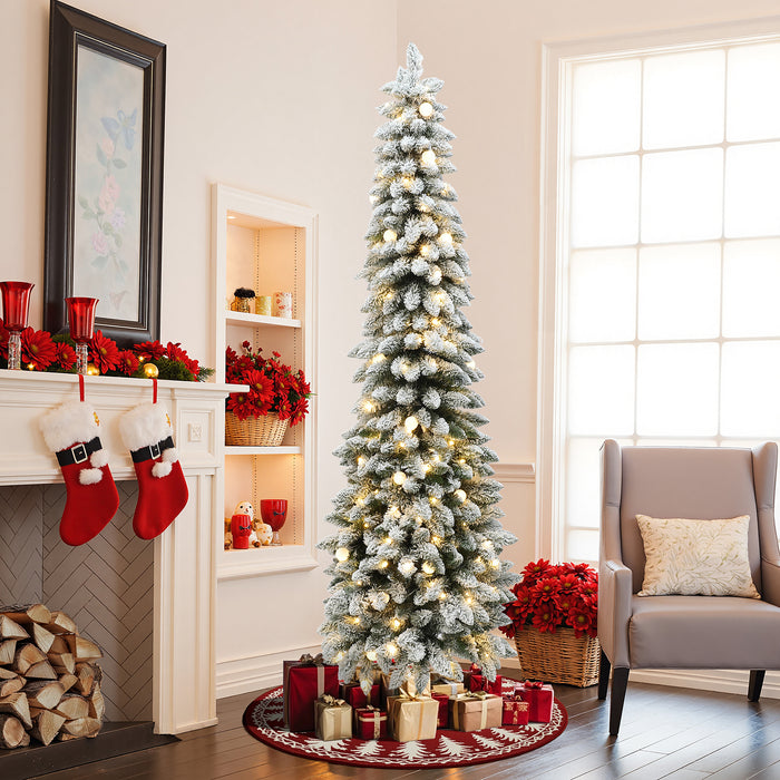 Create a cozy, wintry ambiance with Flocked Artificial Christmas Tree, combining the charm of freshly fallen snow with the practicality of a slim design.