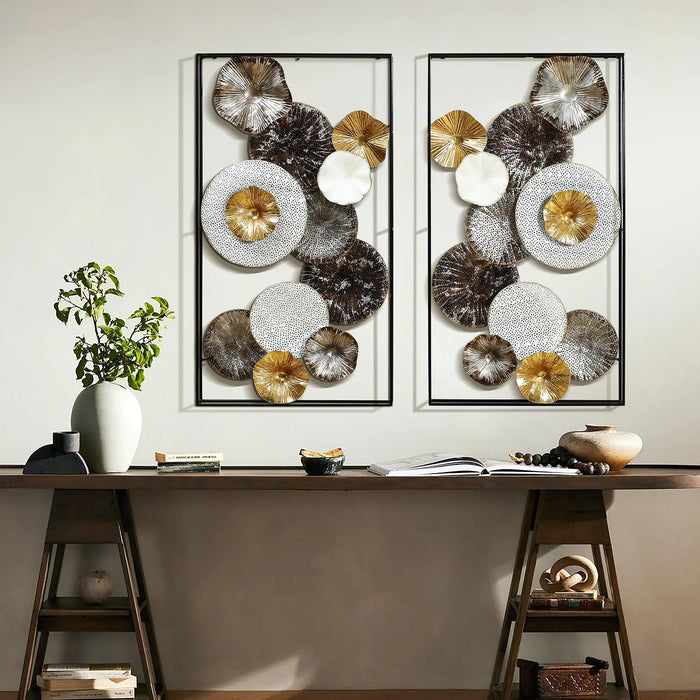 Enhance the aesthetic appeal of your living space with this exquisite 3D wall art boasting a captivating multi-colored abstract flower design and double frame panels. Measuring 35.43 inches tall and 19.69 inches wide, this set can be paired with side tables to create a stunning focal point or used to accentuate an entertainment center or large wall mirror. Its unique and versatile design is sure to make a lasting impression on anyone who lays eyes on it.
