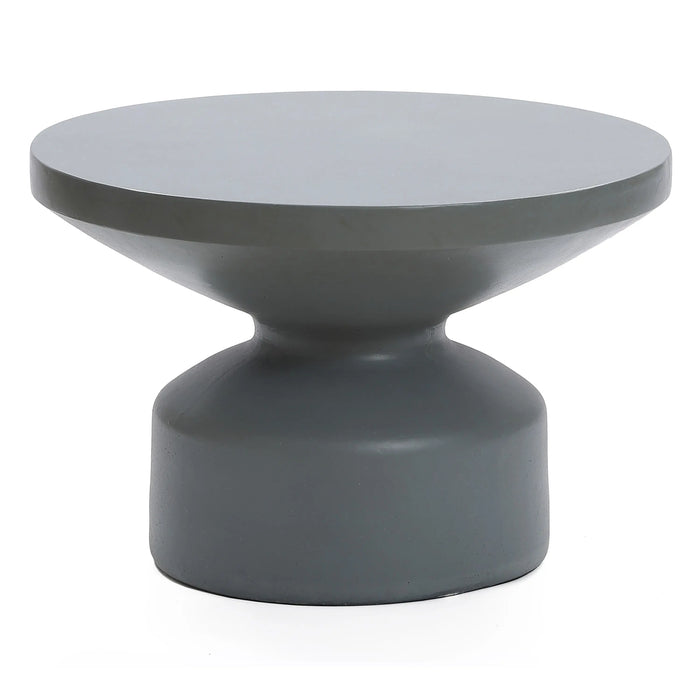 This outdoor coffee table features a contemporary round silhouette with a hand-finished gray surface that mimics the texture of stone. Its sculptural form makes it a striking accent indoors or outdoors.Handcrafted from lightweight magnesium oxide, the table combines the durability of concrete with easier portability. The stone-look finish adds depth and character, while the UV- and weather-resistant surface ensures year-round reliability without extra care.Ideal for patios, balconies, or living rooms, this stone coffee table provides a functional surface for drinks, snacks, or décor. Its modern look blends seamlessly with a variety of design styles, from rustic to contemporary.Bring home this outdoor coffee table to enjoy lasting function and a refined stone-look design in any setting.