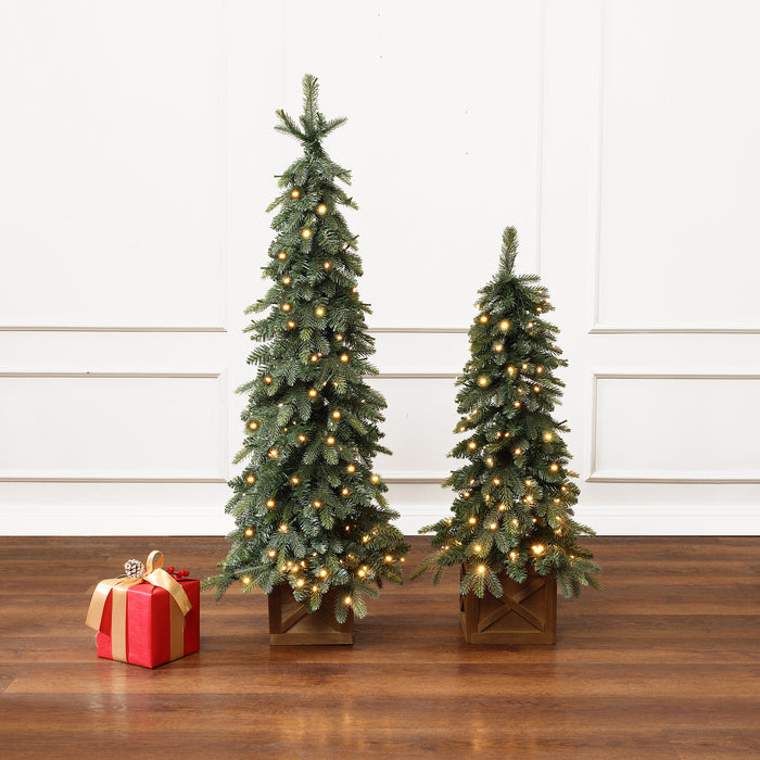This charming 2-piece Downswept Christmas Tree Set. Featuring 3 ft, 4 ft , beautifully realistic branches ,bring cozy, invitin glow.