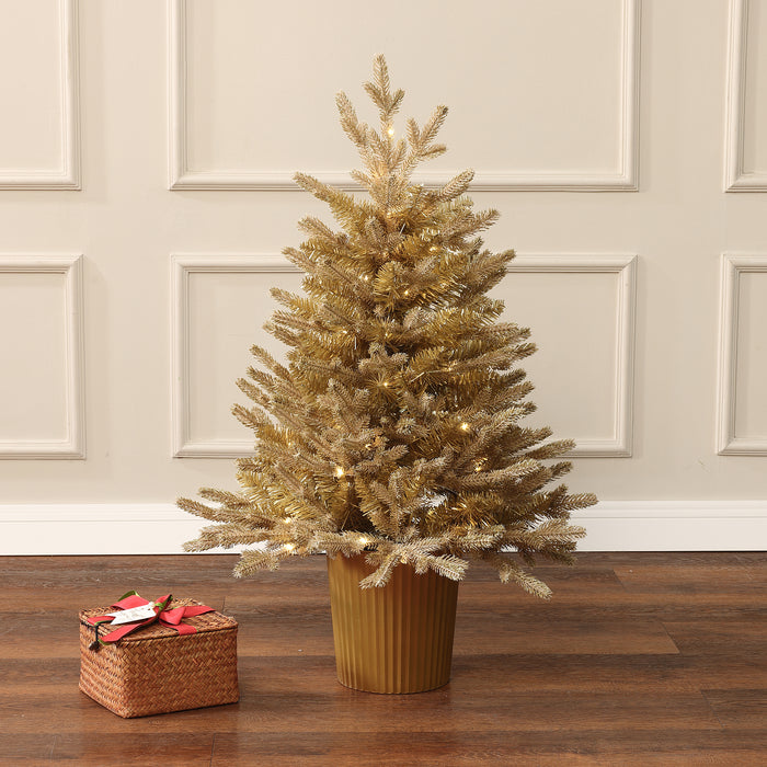 This 3ft Pine Christmas Tree with mix of shiny gold , glitter-tipped branchesadds instant glam to any room.