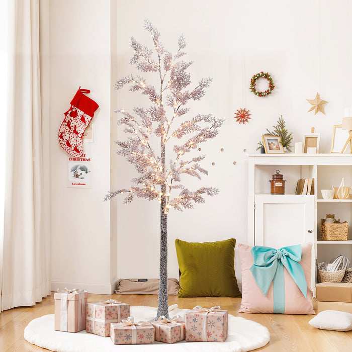 Add a touch of winter magic to your home with this 6.2-foot Artificial Maple Tree, gently dusted with snow and illuminated by 180 warm white micro LED lights. The delicate frosted coating on its soft pink foliage gives it a dreamy, wintry charm¡ªperfect for Christmas or seasonal decoration. Wrapped branches offer a natural look and can be easily assembled and disassembled. Made from durable plastic and powered by a convenient plug-in design, this tree is easy to set up and built to last. Whether placed by a window, near a fireplace, or in the bedroom, it¡¯s a beautiful accent that adds cozy elegance to your indoor space.