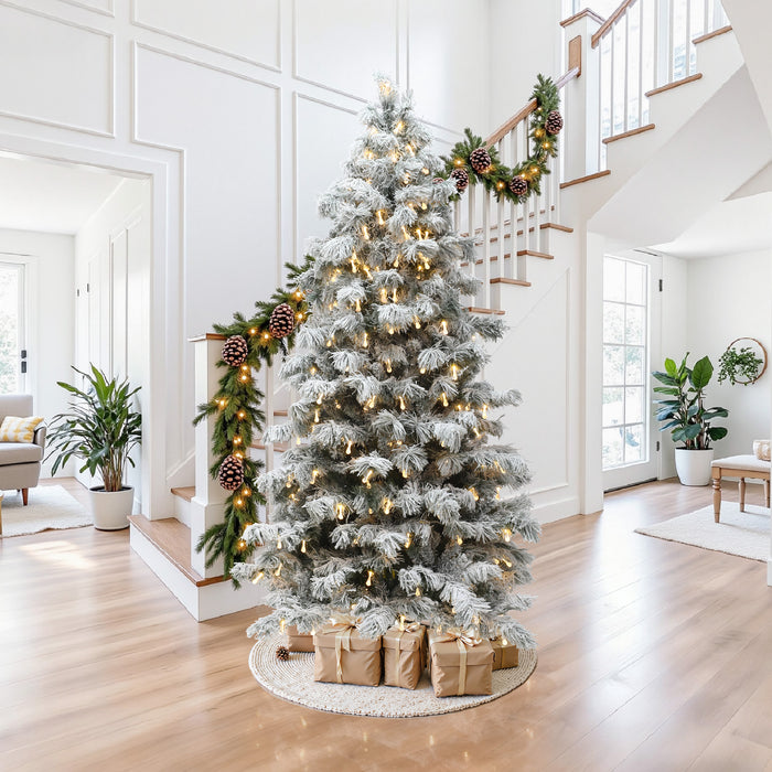 Transform your space into a serene winter escape with this Snow-Flocked Christmas Tree. Inspired by cedar trees and freshly fallen snow, its rich layering and lifelike appearance evoke the magic of a snowy forest.