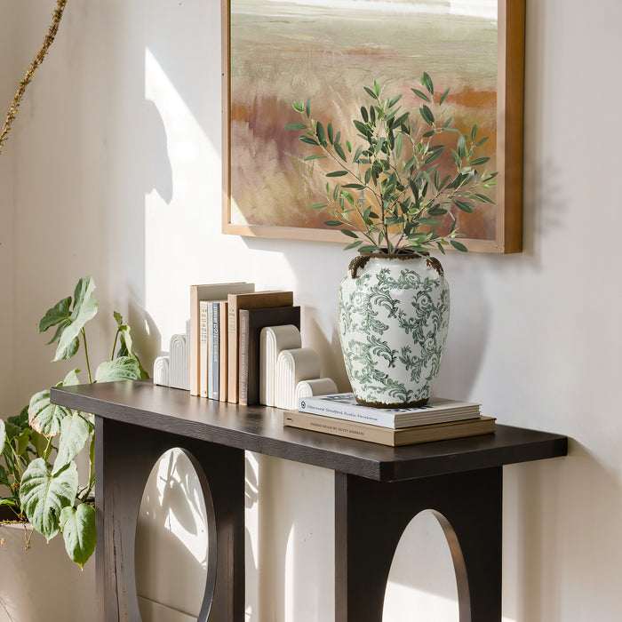 This handcrafted Round Floral Ceramic Vase. Standing at 9.84" tall, showcases intricate green floral patterns , rustic glaze that highlight exceptional artisanal craftsmanship.