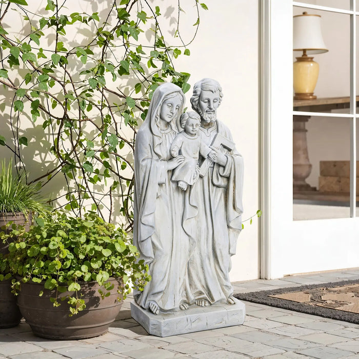 This Holy Family statue, featuring exquisite craftsmanship and a meaningful religious theme, is an ideal choice for decorating homes or religious venues. Made from high-quality, marble-like polyresin, the statue is not only durable but also preserves its beauty in both indoor and outdoor settings. Its antiqued finish adds a classic charm, allowing it to blend seamlessly with any decorative style. The figures of the Holy Family, including Jesus, Mary, and Joseph, are meticulously carved with rich details and expressive features, showcasing the sculptor's deep understanding of religious narratives and exceptional skill. Whether as a personal expression of faith or as a meaningful gift for friends and family, this statue offers both aesthetic appeal and significance.
