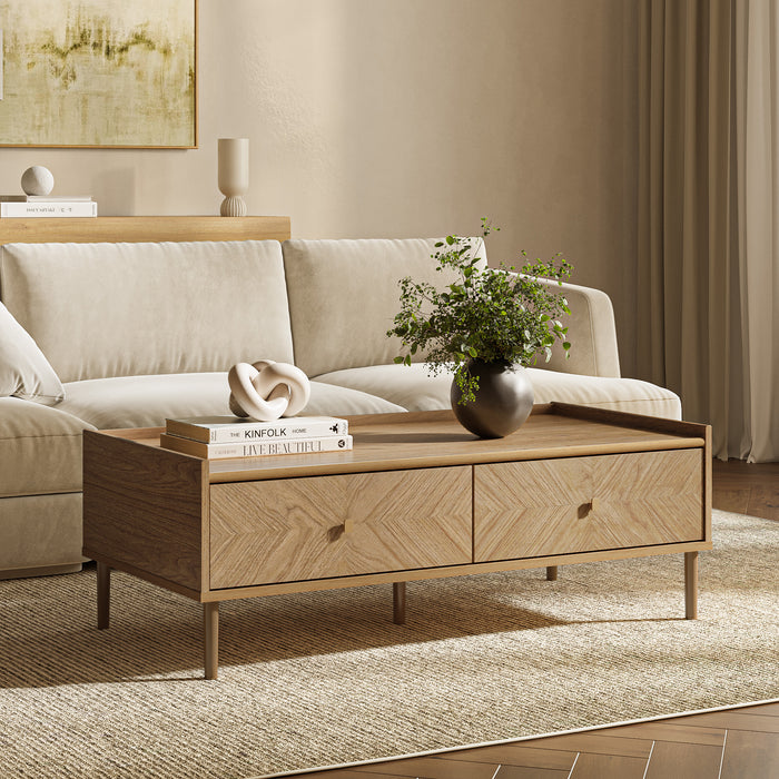 Wood Coffee Table with Storage for Modern Japandi Living