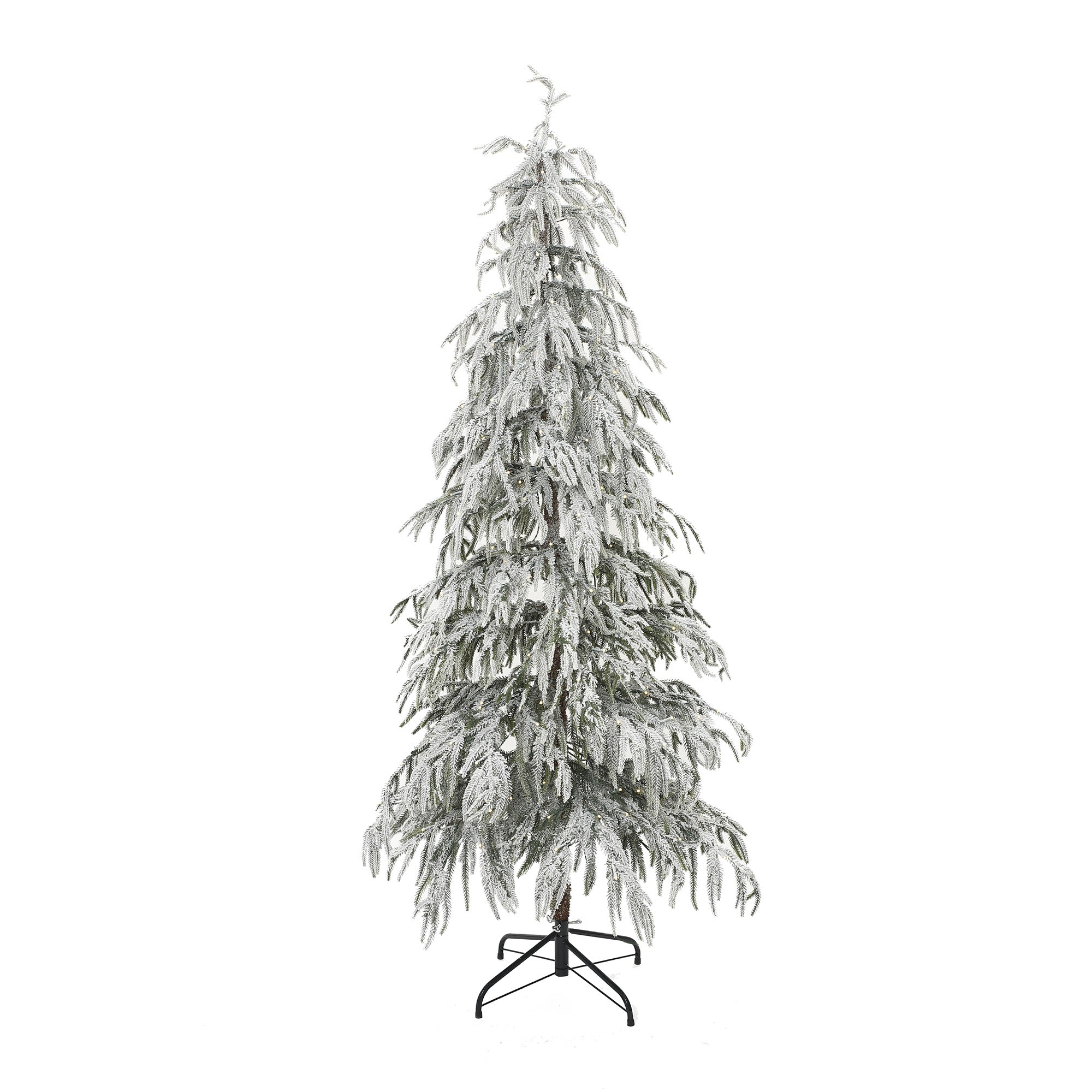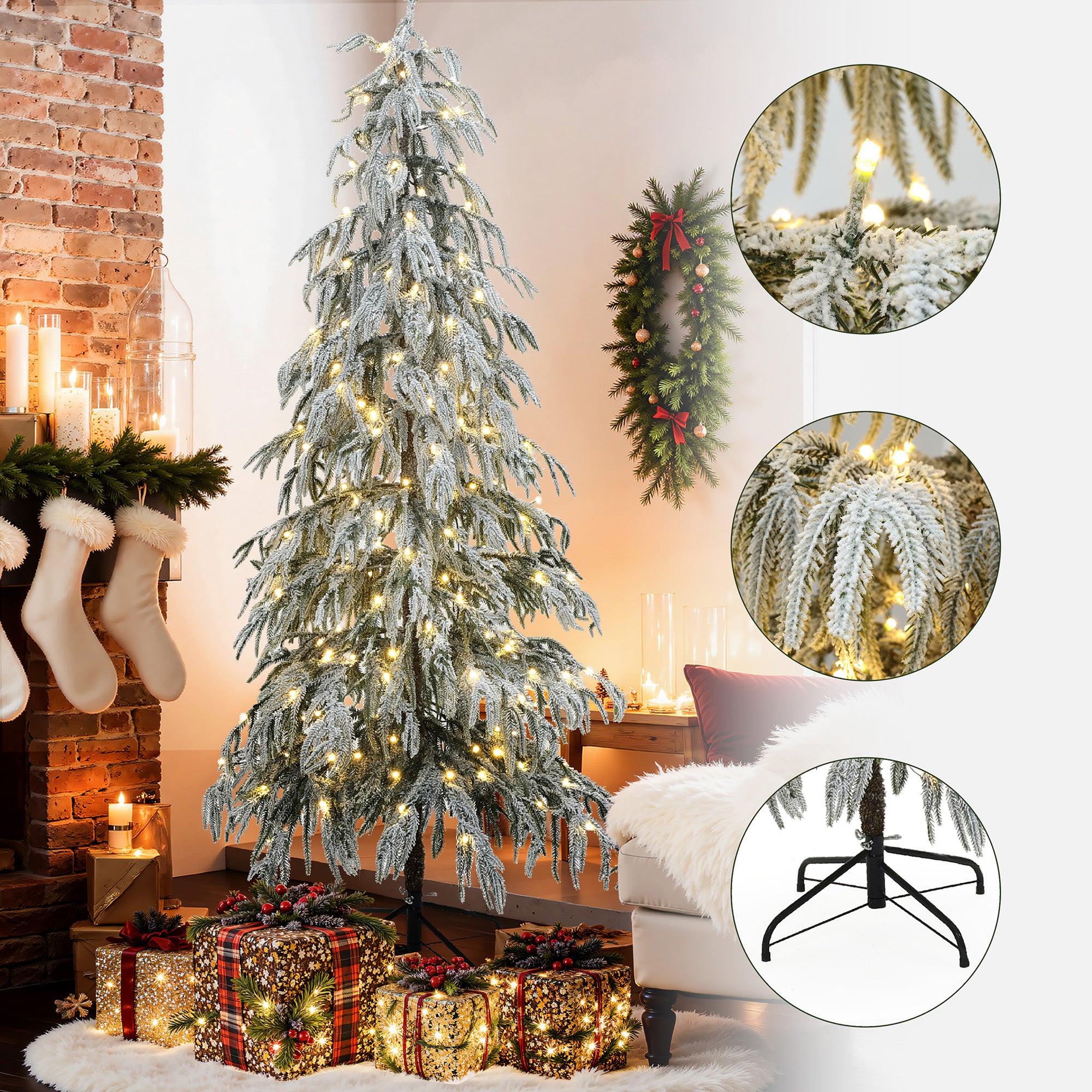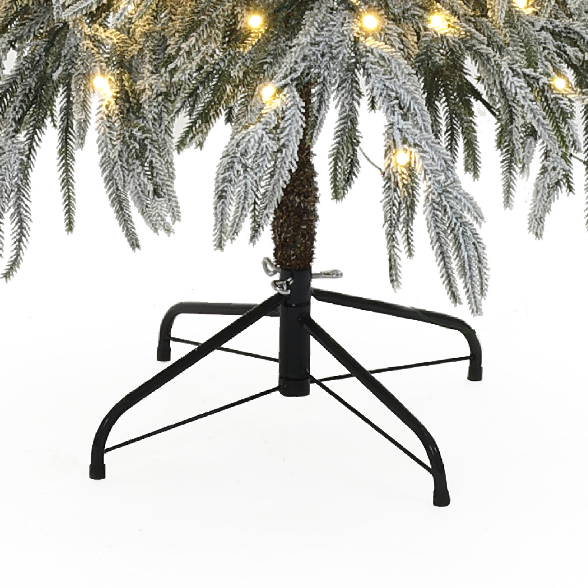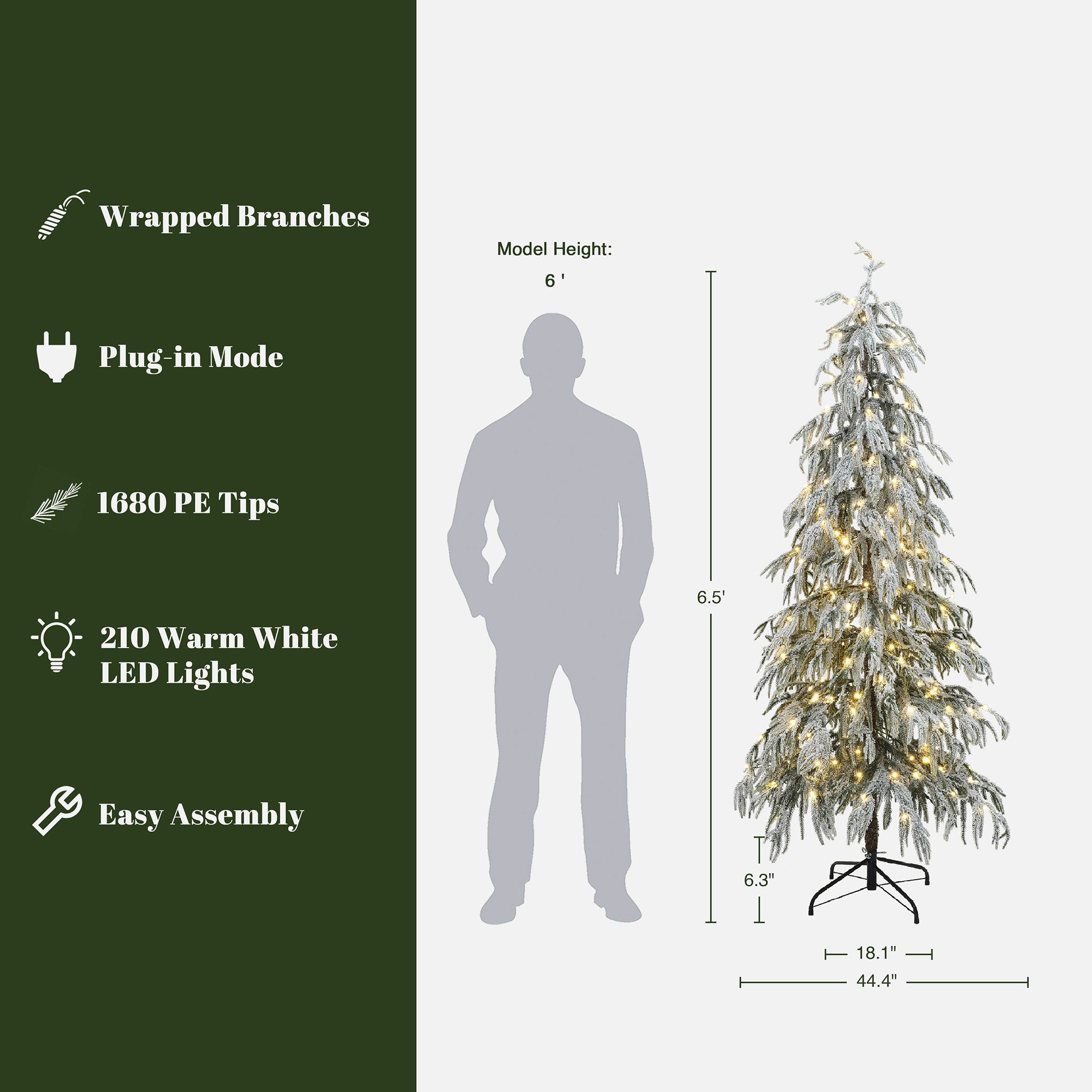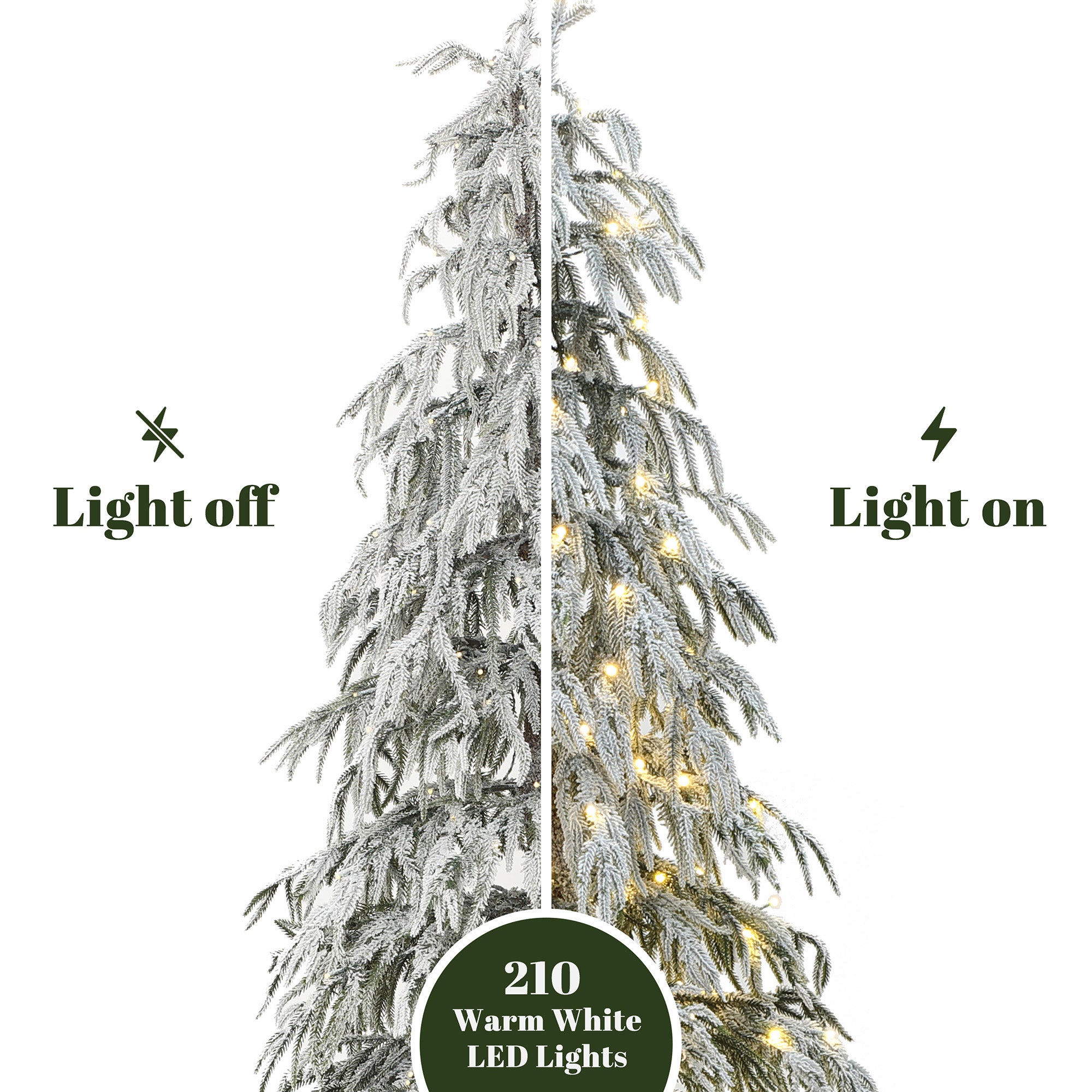 Crafted with 1,680 soft PE needles, it mimics the lush shape of a real fir tree, while 210 warm white LED lights illuminate your home with a cozy glow. The snow-dusted branches give off a romantic silver sheen.