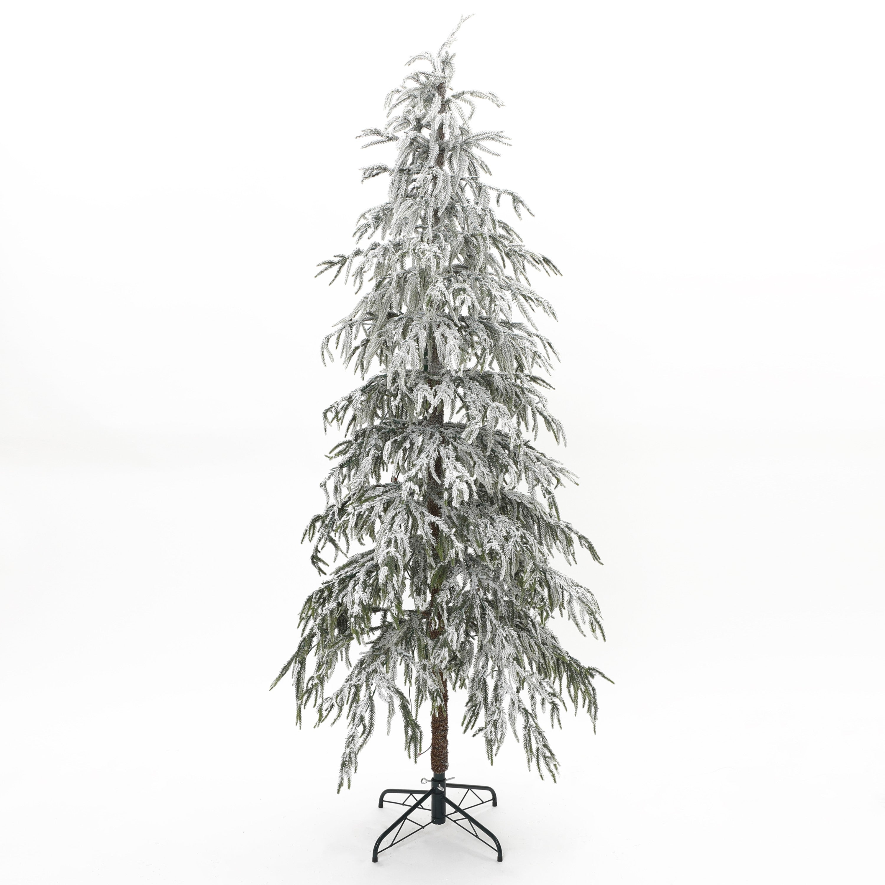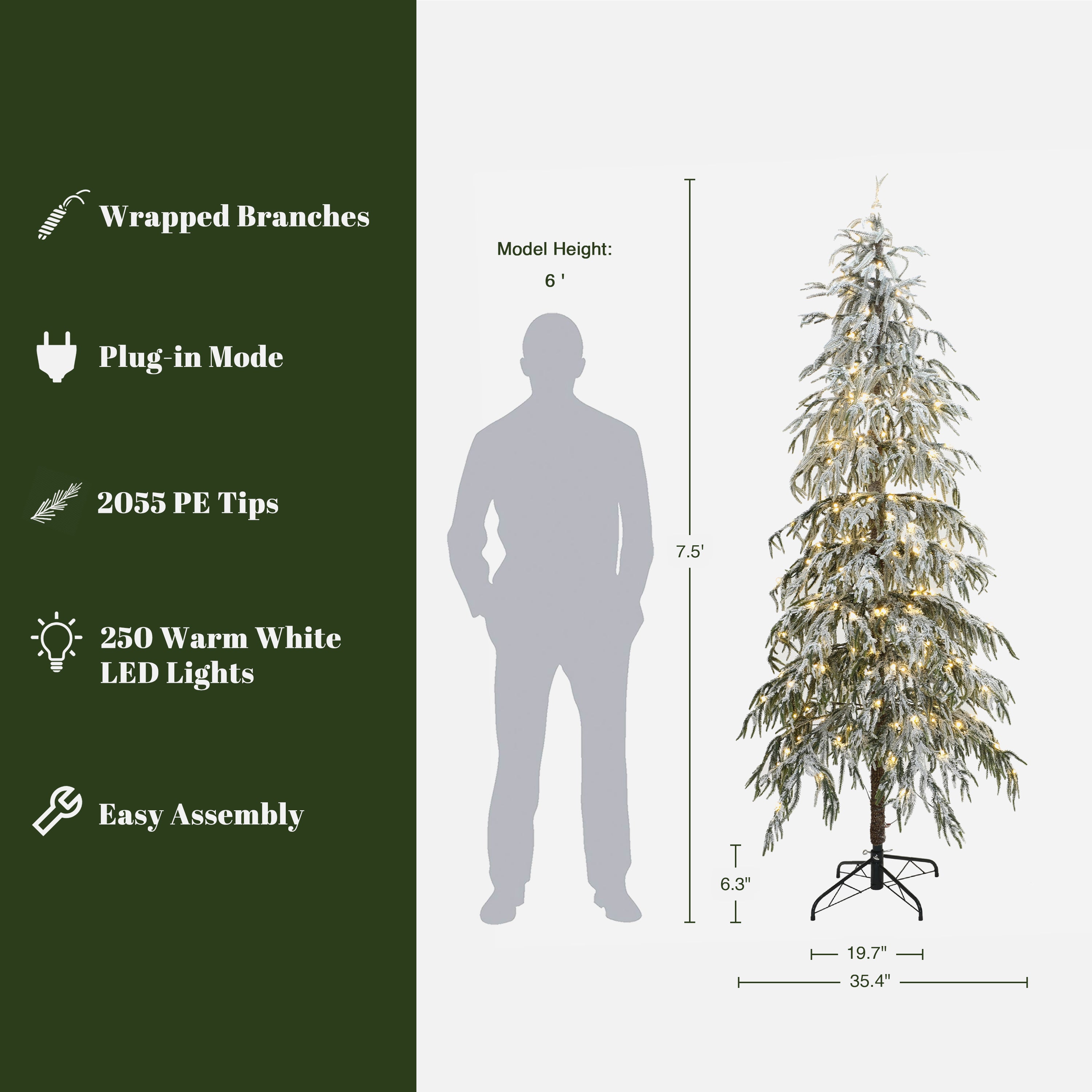 Pre-Lit Snowy Slim Artificial Cedar Christmas Tree, 7.5ft
