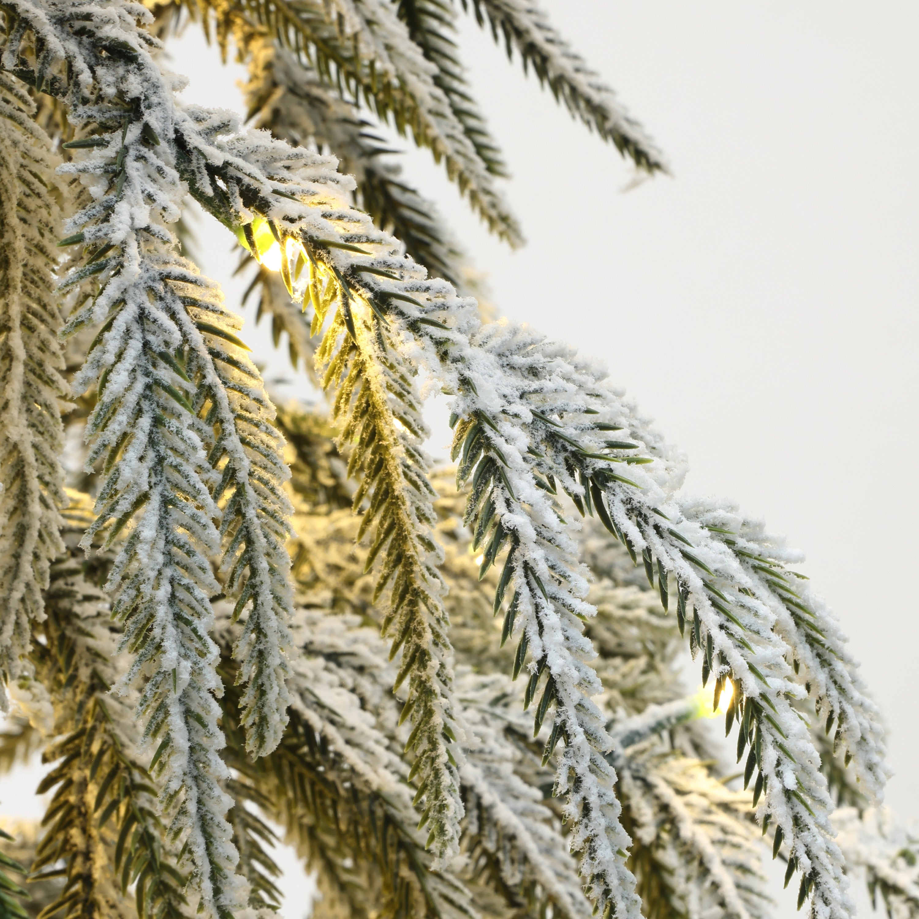 Crafted with 2,055 soft PE tips for a natural fir-like shape, it features 250 warm white LEDs that emit a cozy ambiance. A three-part structure and sturdy metal stand ensure easy setup.