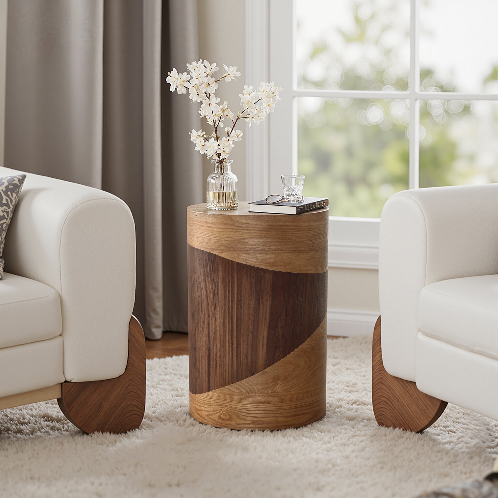 Modern Wood Round Side Table,Natural & Dark,20.25''