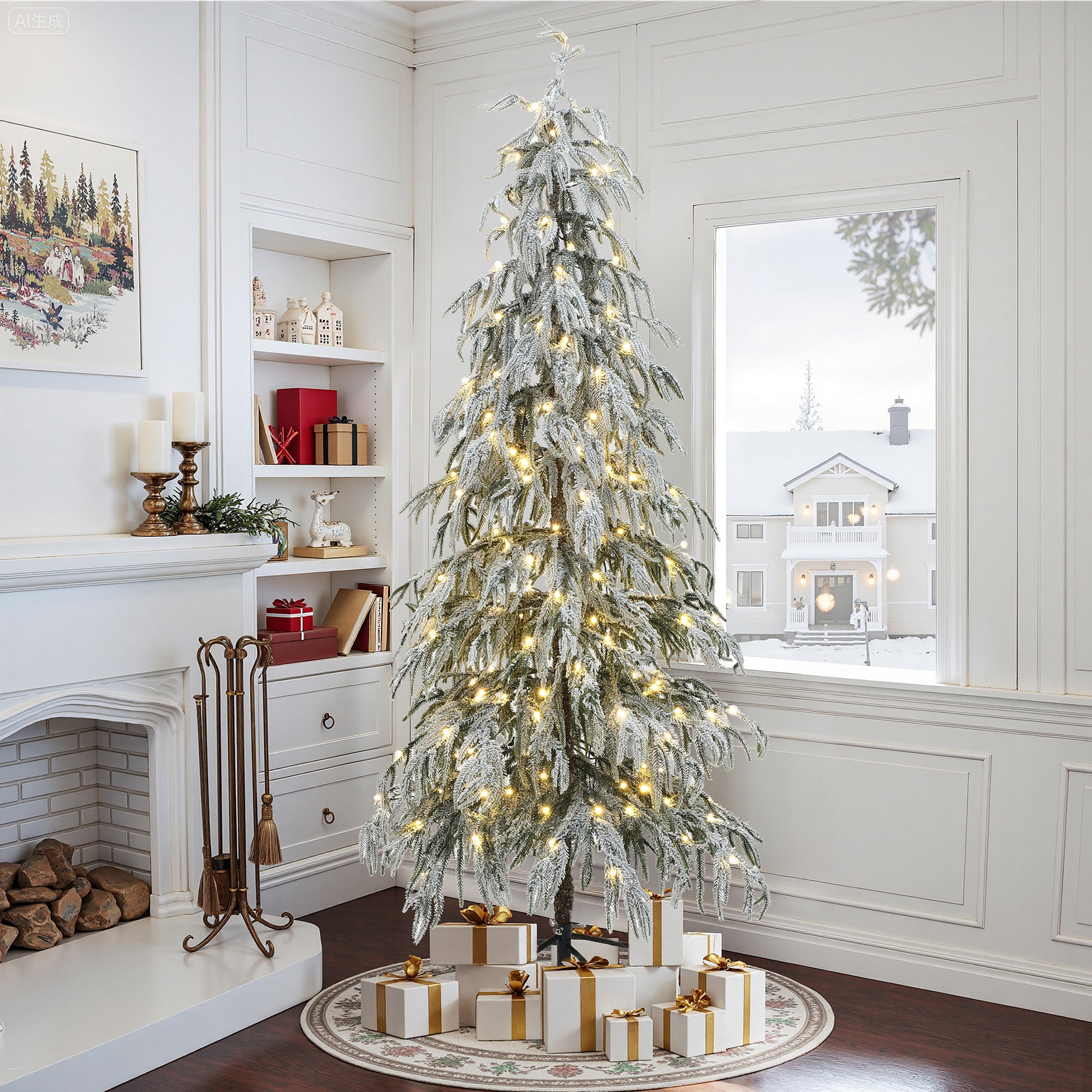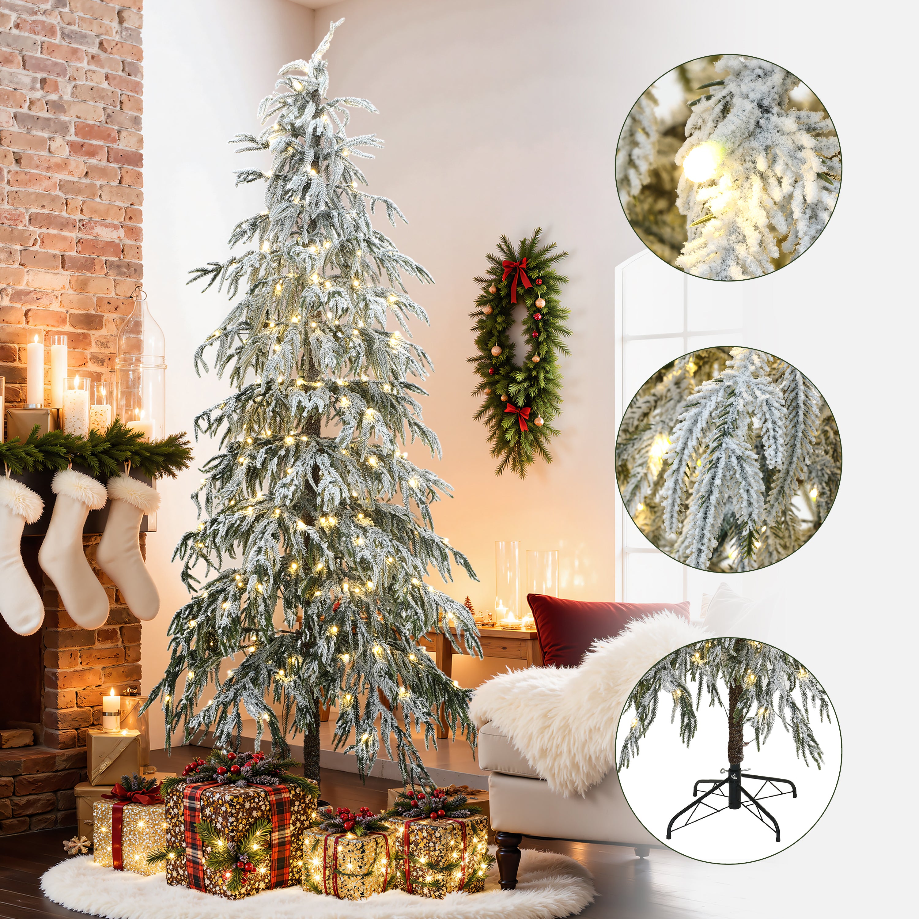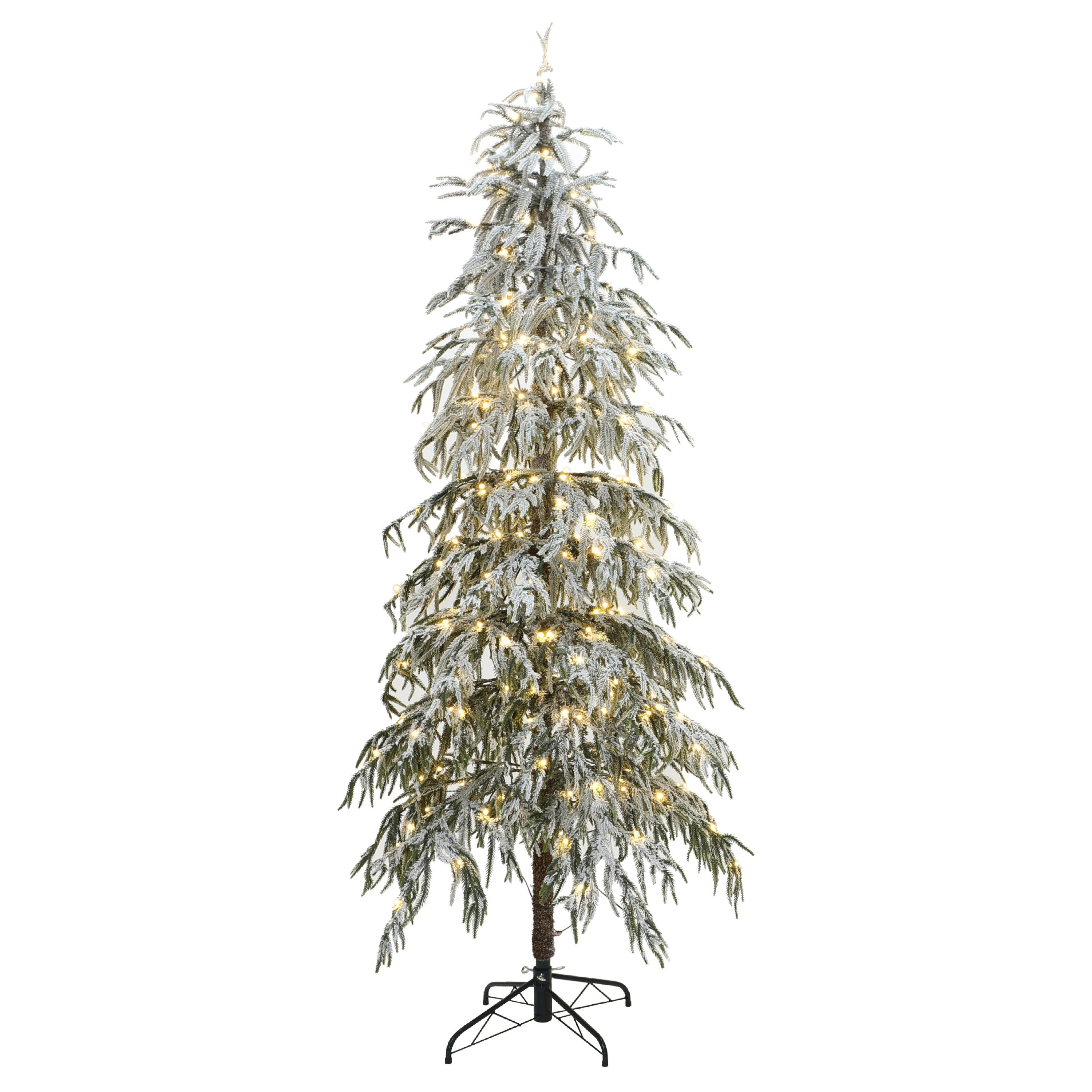 Pre-Lit Snowy Slim Artificial Cedar Christmas Tree, 7.5ft