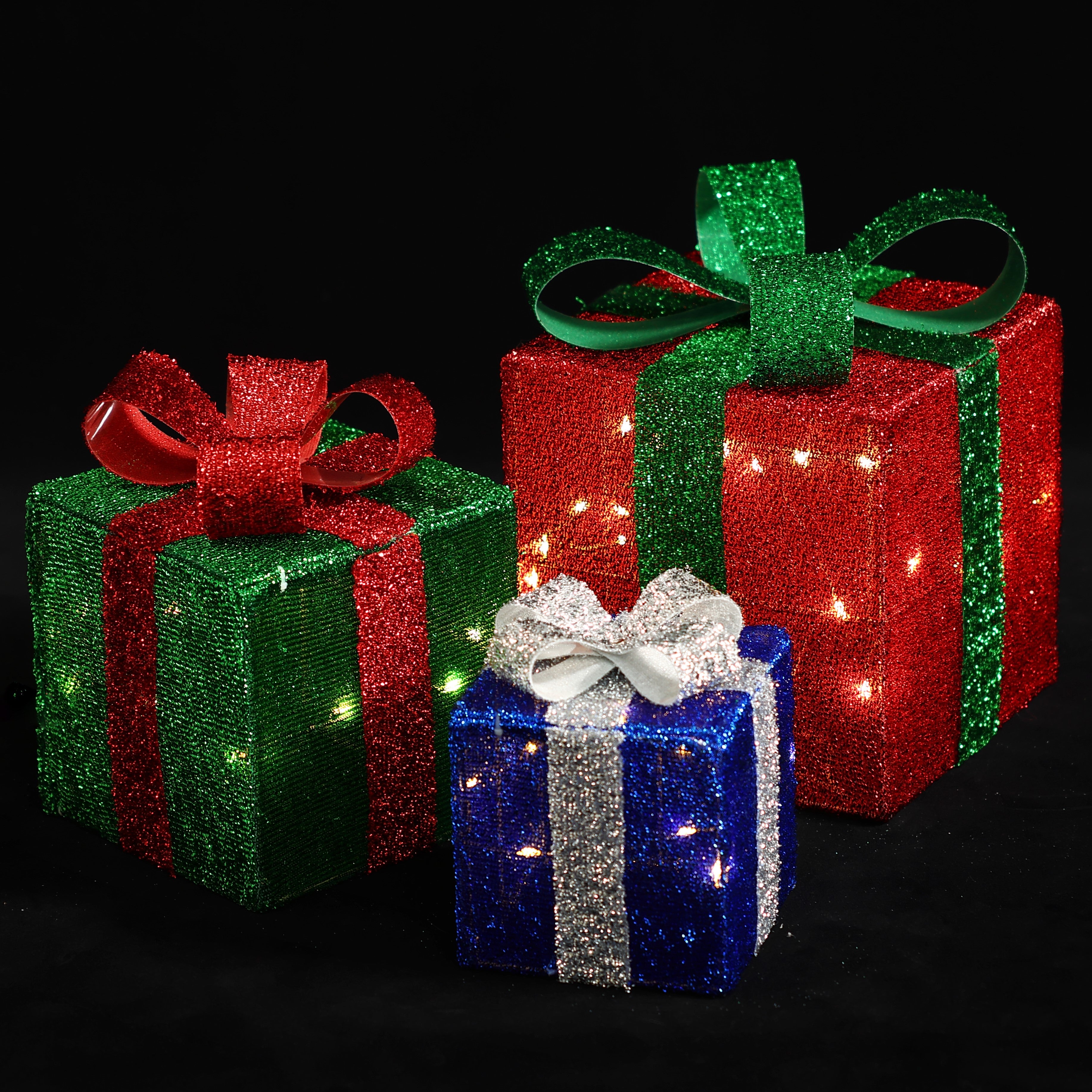 Set of 3 Lighted LED Christmas Holiday Presents Decoration, Indoor/Outdoor
