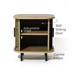 Bring timeless style and smart storage to your bedroom with this wood nightstand designed for both form and function. Crafted as a versatile modern nightstand, it features smooth sliding tambour doors that save space while adding a refined mid-century touch. A corner storage compartment with an adjustable interior shelf keeps books, electronics, and nighttime essentials neatly organized. Softly curved edges and sturdy metal legs create a balanced, design-forward look. Compact yet functional, this piece works beautifully as a boho bedside table or storage side table, offering an effortless way to elevate your space with warmth, style, and everyday practicality.