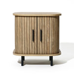 Aria Mid Century Modern Nightstand with Sliding Tambour Doors, 18.9" H