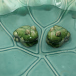 Our Aqua Green Ceramic Toadstool Birdbath provides serene spot for birds to bathe drink serves as captivating garden accent, adorable frog figurines enhancing the natural beauty of outdoor space.