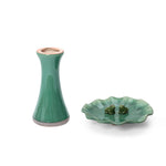 Outdoor Ceramic Birdbath- Whimsical Charm with Aqua Green Design