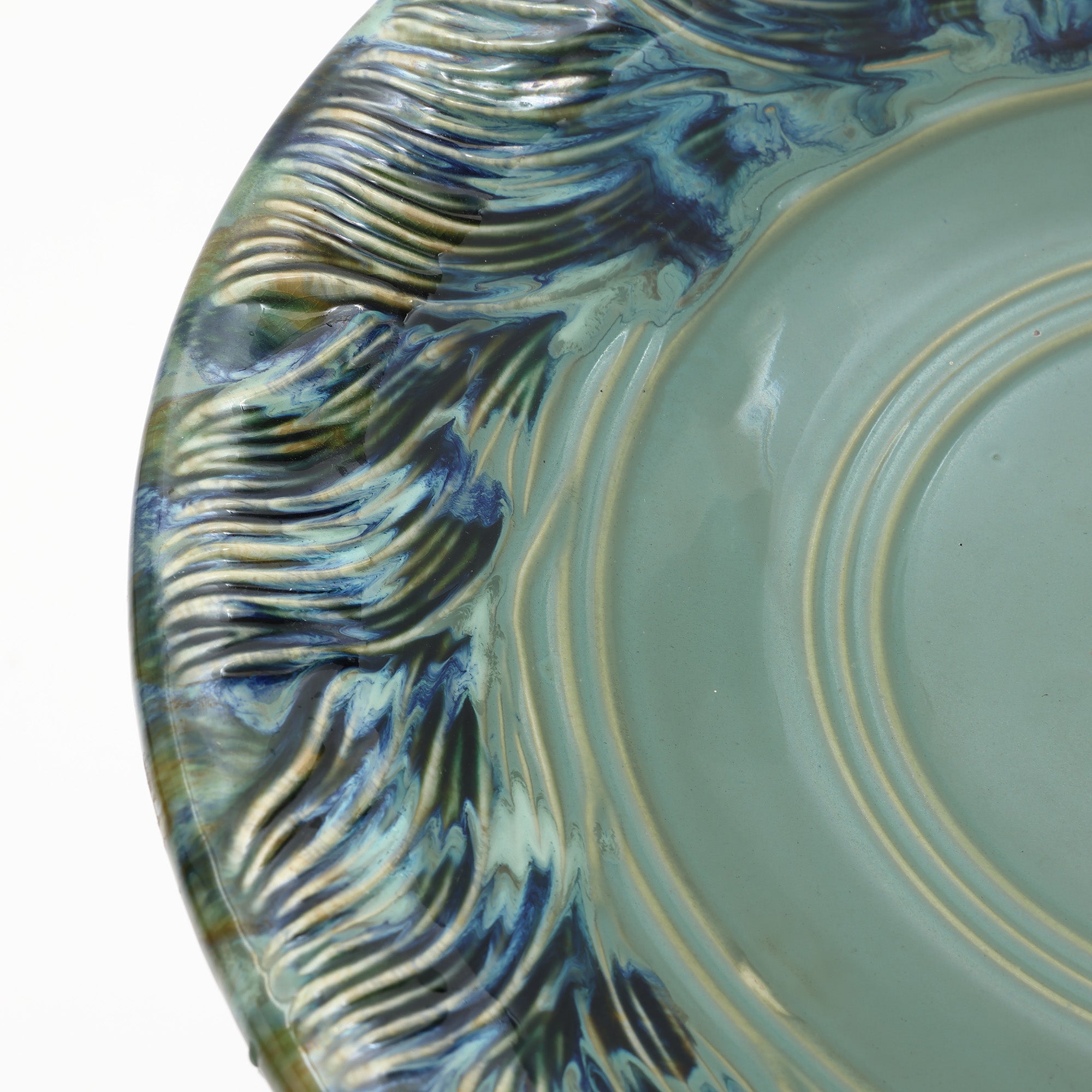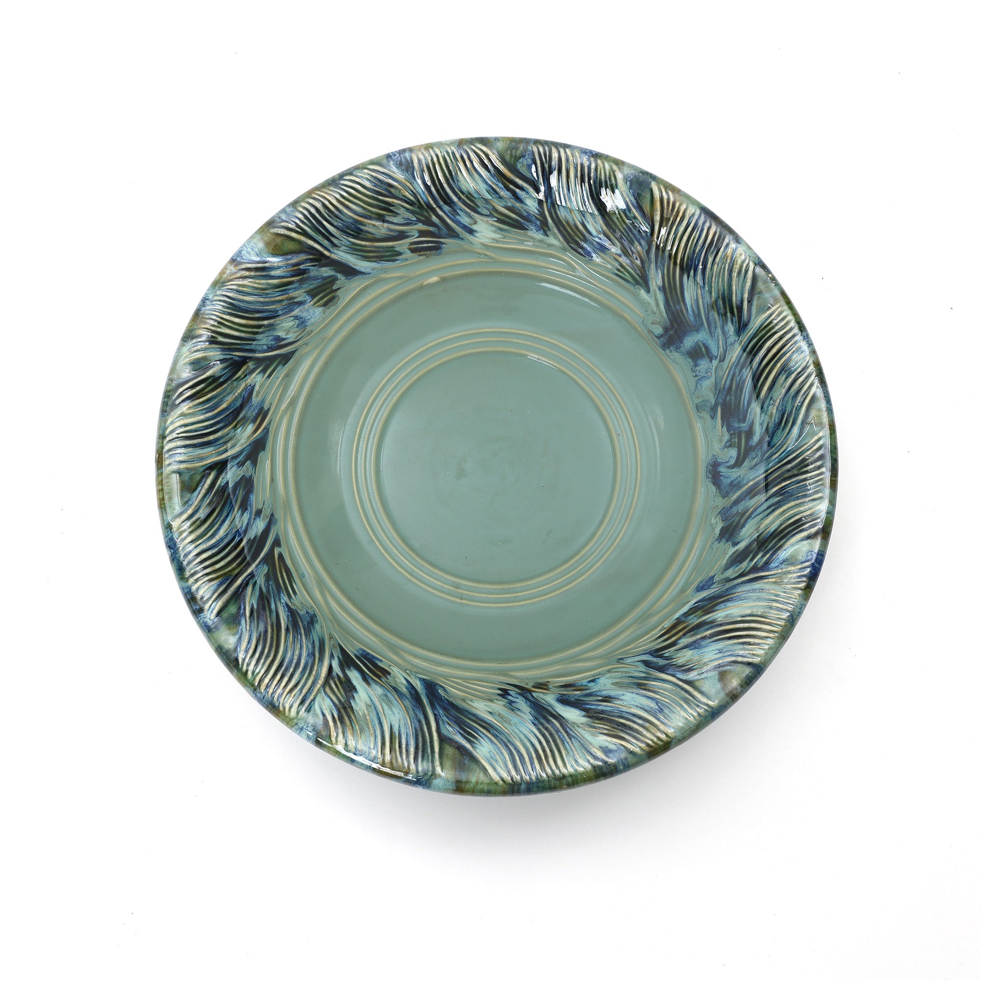 Outdoor Ceramic Birdbath-Elevate Your Garden with Marine Green Swirl Elegance
