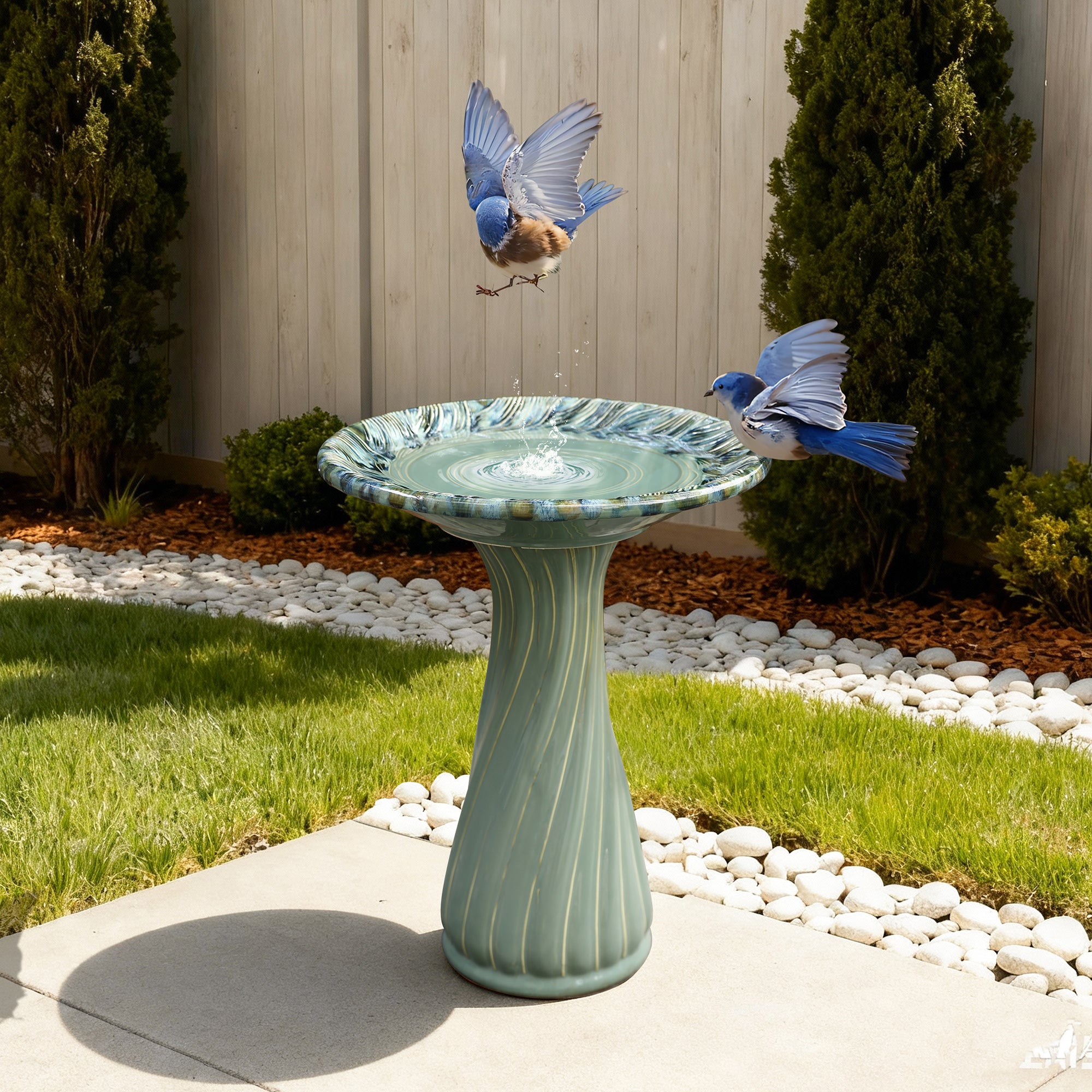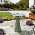 Green Outdoor Ceramic Birdbath with Swirl Pattern,20.5''
