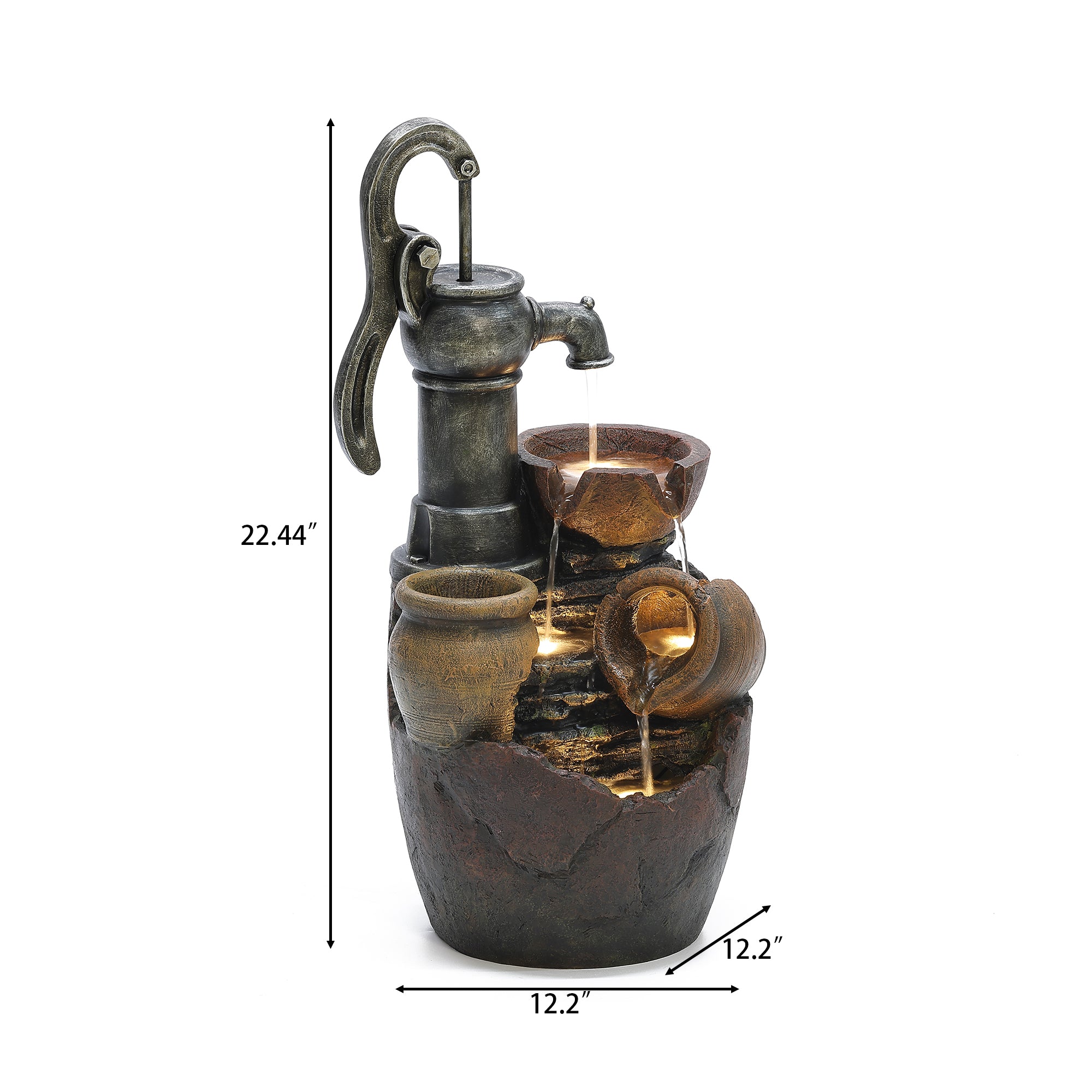 Farmhouse Outdoor Fountain with LED Lights – Pump and Pots Resin Design