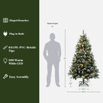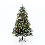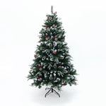 This 6.1-foot Frosted Tip Christmas Tree. With 844 lush tips made from PE, PVC, and bristle branches.Featuring snow-kissed white tips, vibrant red berries, frosted pinecones,  natural look from every angle