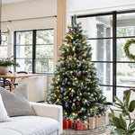 Pre-strung with 300 warm white LED lights, it casts a soft, inviting glow. Hinged branches ensure quick setup and easy fluffing to your preferred style.