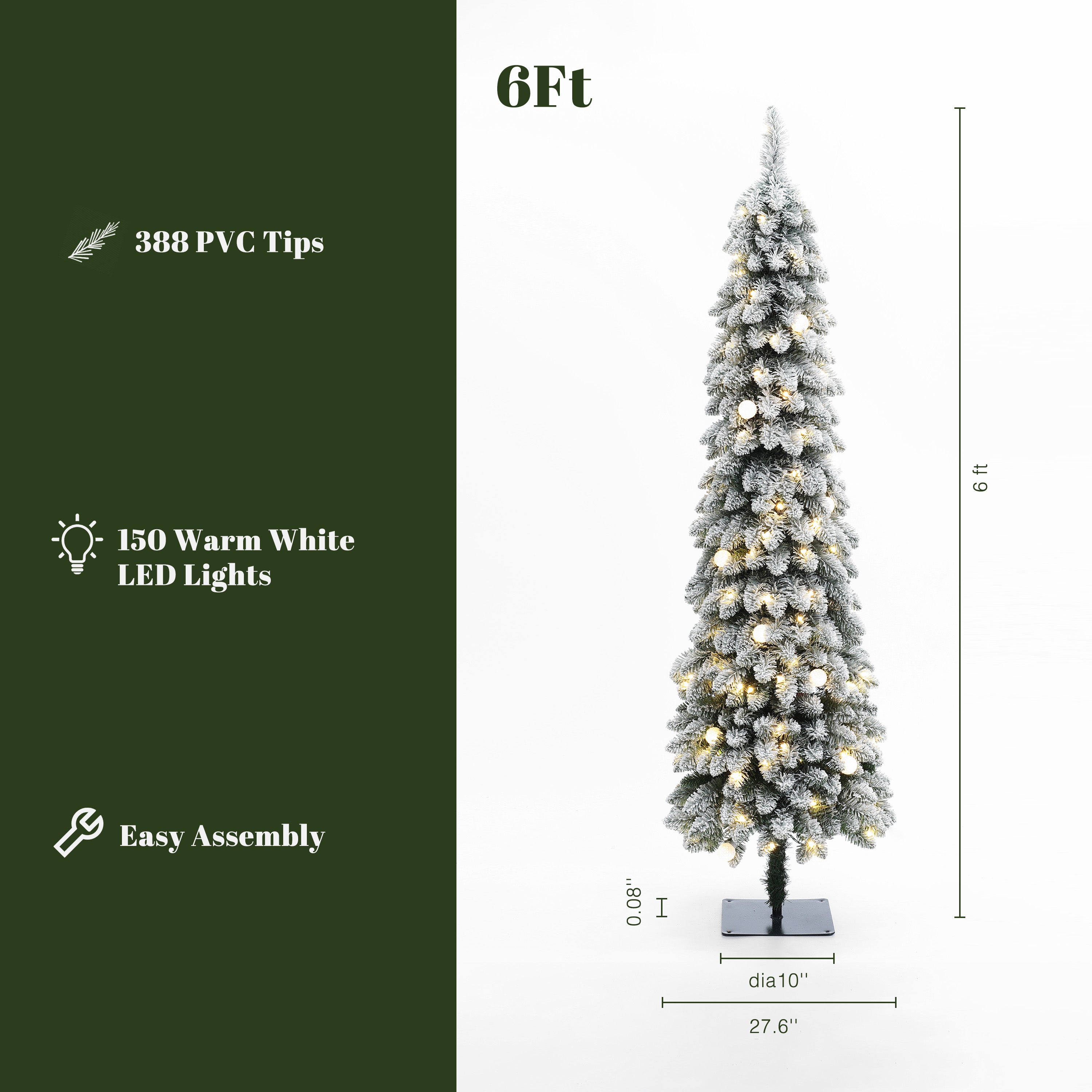 6Ft Pre-Lit Flocked Pencil Artificial Christmas Tree