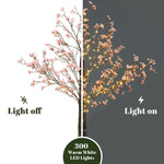 Made of lightweight plastic materia,pre-lit with 300 warm white micro LED lights, the blossoms,trunk are subtly dusted with fine gold glitter. Its durable plastic design ensures long-lasting quality.