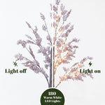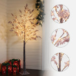 Add a touch of winter magic to your home with this 6.2-foot Artificial Maple Tree, gently dusted with snow and illuminated by 180 warm white micro LED lights. The delicate frosted coating on its soft pink foliage gives it a dreamy, wintry charm¡ªperfect for Christmas or seasonal decoration. Wrapped branches offer a natural look and can be easily assembled and disassembled. Made from durable plastic and powered by a convenient plug-in design, this tree is easy to set up and built to last. Whether placed by a window, near a fireplace, or in the bedroom, it¡¯s a beautiful accent that adds cozy elegance to your indoor space.