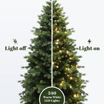 With 2013 PE+PVC tips, lush, full, pre-lit with 340 warm white LEDs that add a cozy glow to your space, the hinged branches make setup a breeze. Simply fluff , shape to your liking for the perfect holiday display.