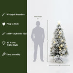 Pre-Lit Fiber Optic Flocked Pine Christmas Tree,6ft