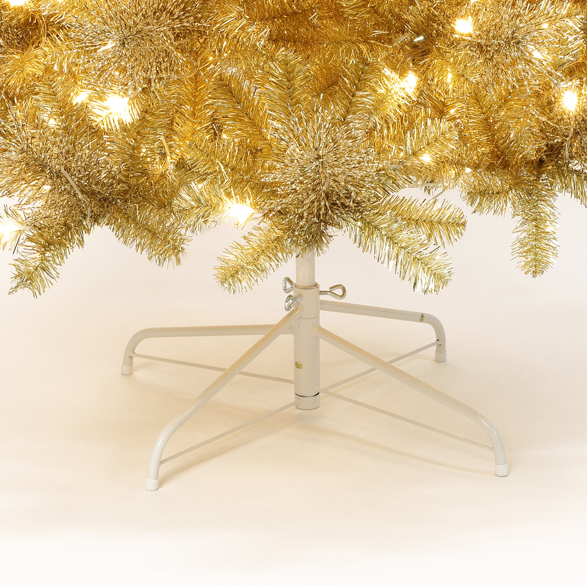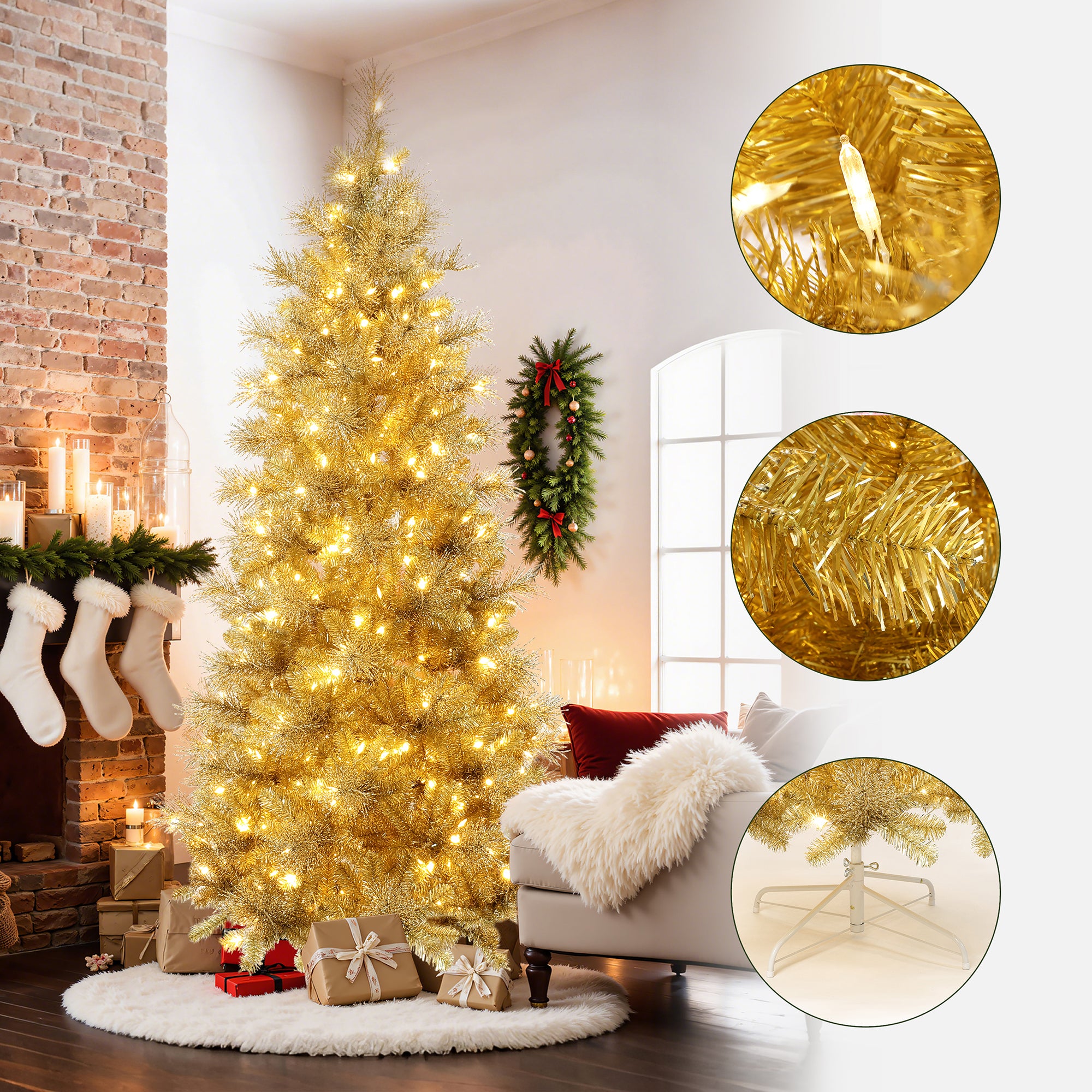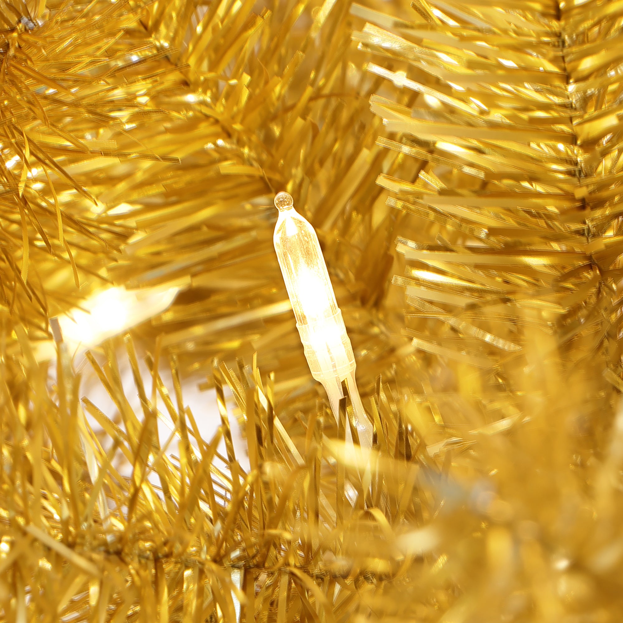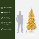 Pre-Lit Gold Tinsel Pine Christmas Tree with Stand,,7.5Ft