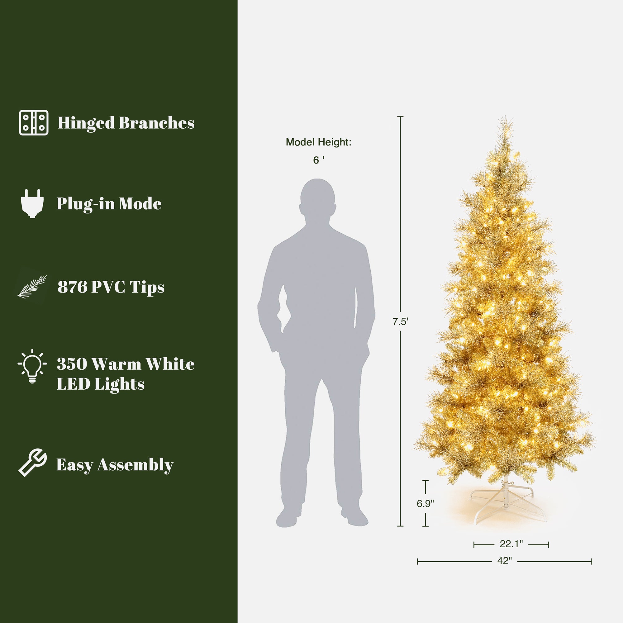 - Size: Height up to 7.5 ft, suitable for living rooms and entryways, making it the perfect base for holiday decor.