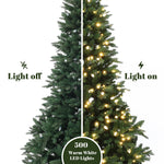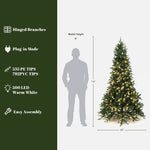 Crafted with a blend of premium 1327 PE + PVC materials, create  lush, realistic look. 500 warm white LED lights fill your space with a soft glow,.3-stage hinged branch design  effortless setup, the sturdy metal stand provides long-lasting stability.