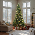 This 7.5Ft pre-lit slender christmas tree.while transparent pinecone lights add crystal-like shimmer to complete the holiday ambiance.