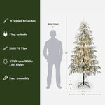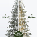 Crafted with 2,055 soft PE tips for a natural fir-like shape, it features 250 warm white LEDs that emit a cozy ambiance. A three-part structure and sturdy metal stand ensure easy setup.