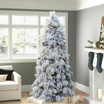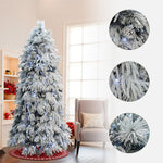 This 7ft Pine Christmas Tree. Featuring classic conical design with downward-sloping branches,feathery reed tips, lightly dusted with fine white artificial snow, instantly evoking the serene beauty of  first winter snowfall.