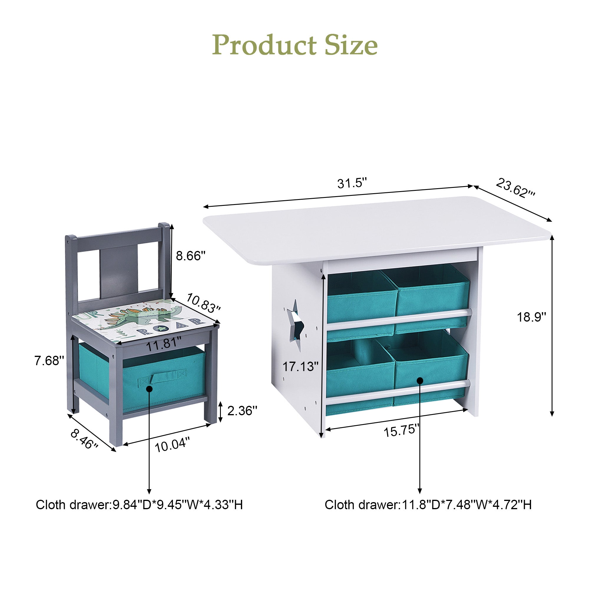 - This table and chair set combines function with fun with its storage options and adorable design.