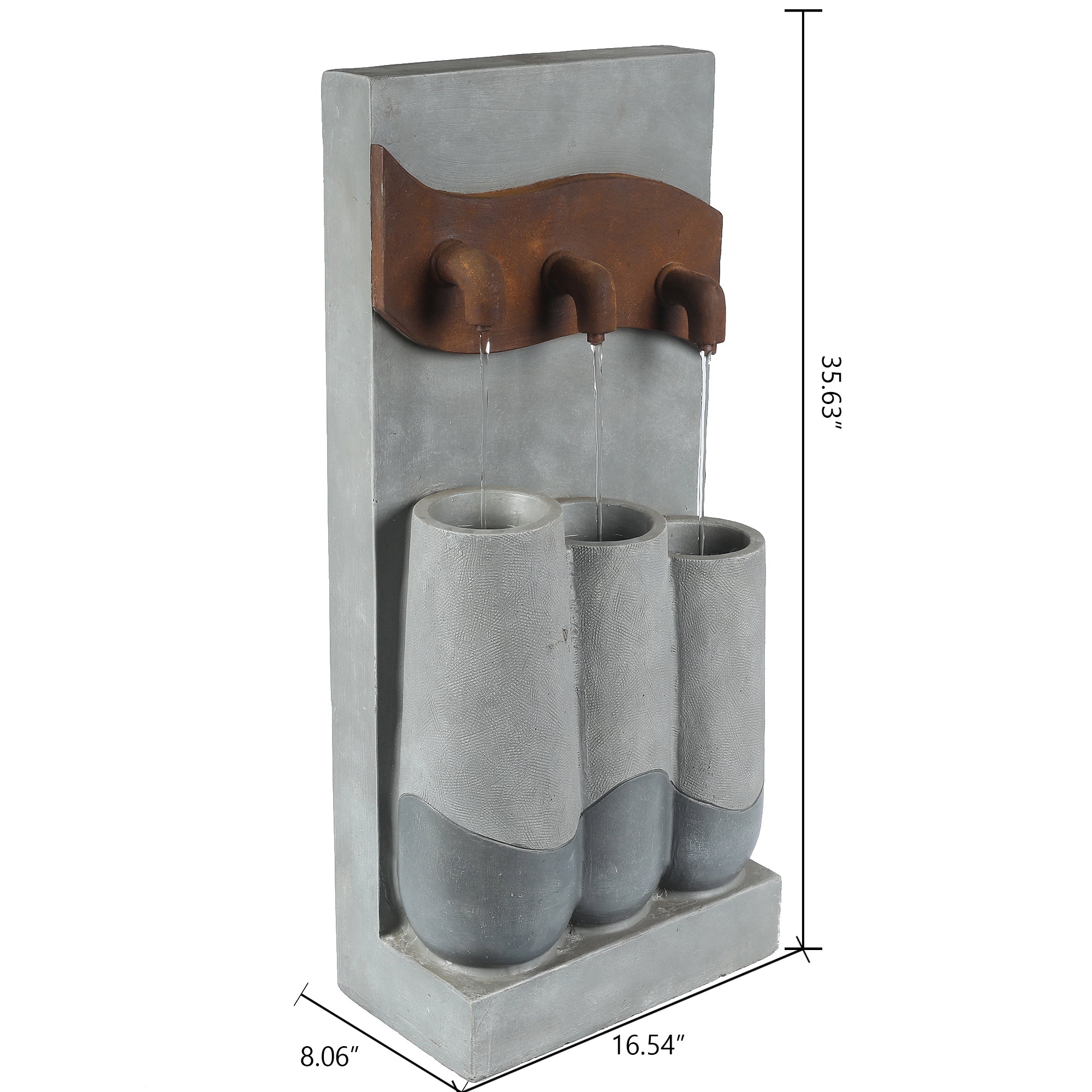 Add contemporary charm to your space with this fountain with LED light featuring three stacked urns. Crafted from durable gray cement, it brings a modern, textured look to patios or gardens. Water cascades gently from pot to pot, illuminated by built-in LED lighting for a calming glow at night. This fountain with LED light combines sculptural design with relaxing sound, perfect for outdoor living areas