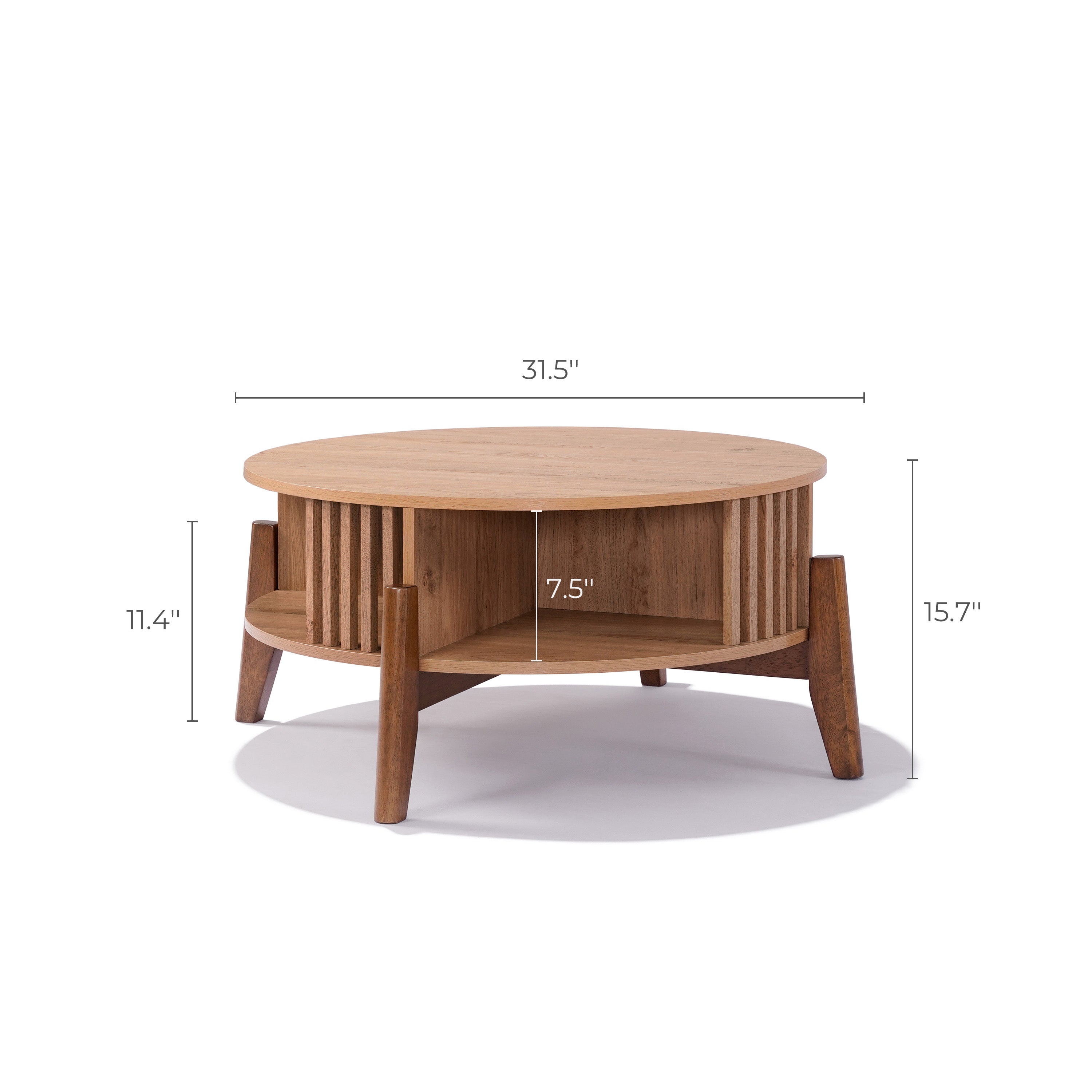 Round Coffee Table with Storage – Space-Saving Wood Accent