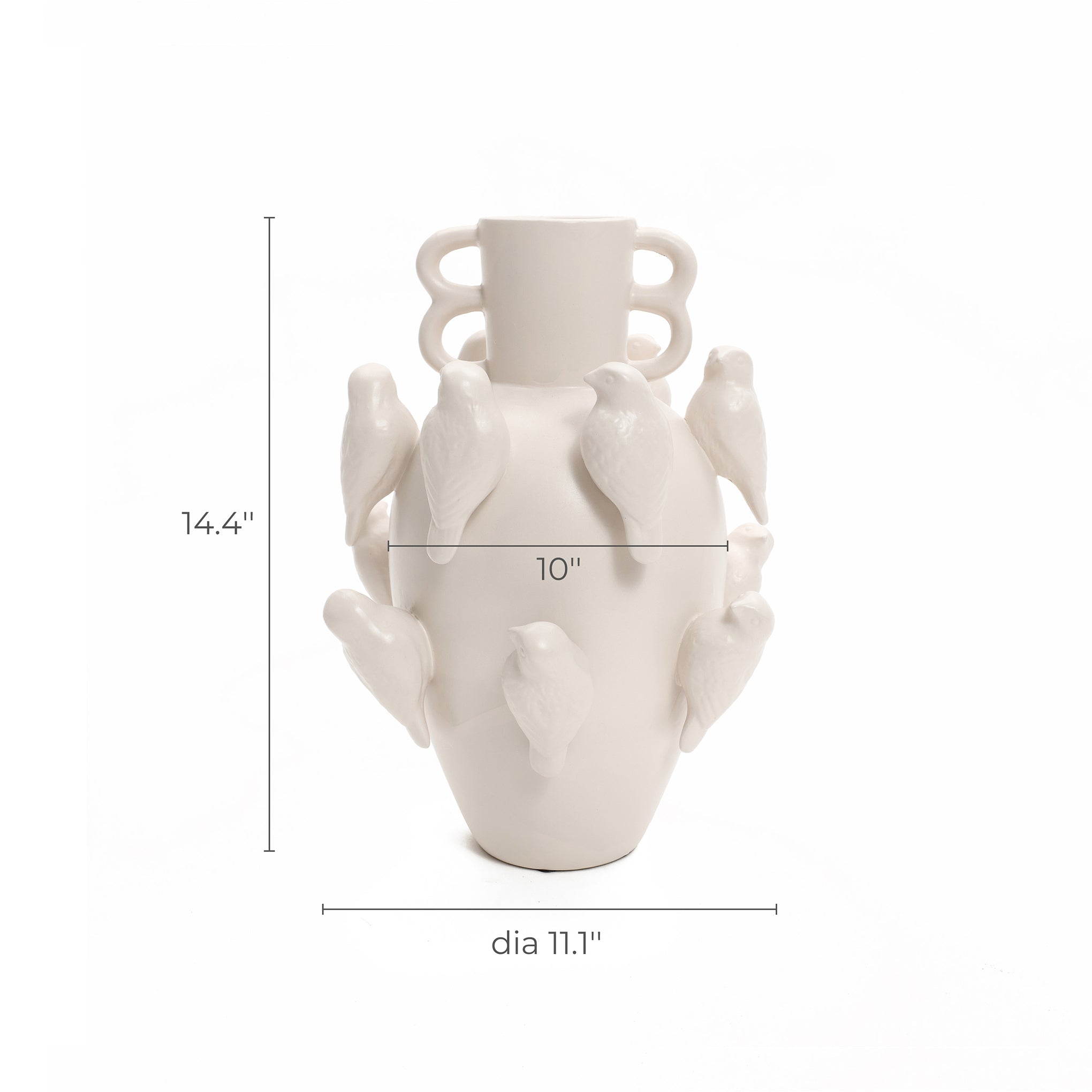 White Ceramic Vase birds Vase, 14.4" h