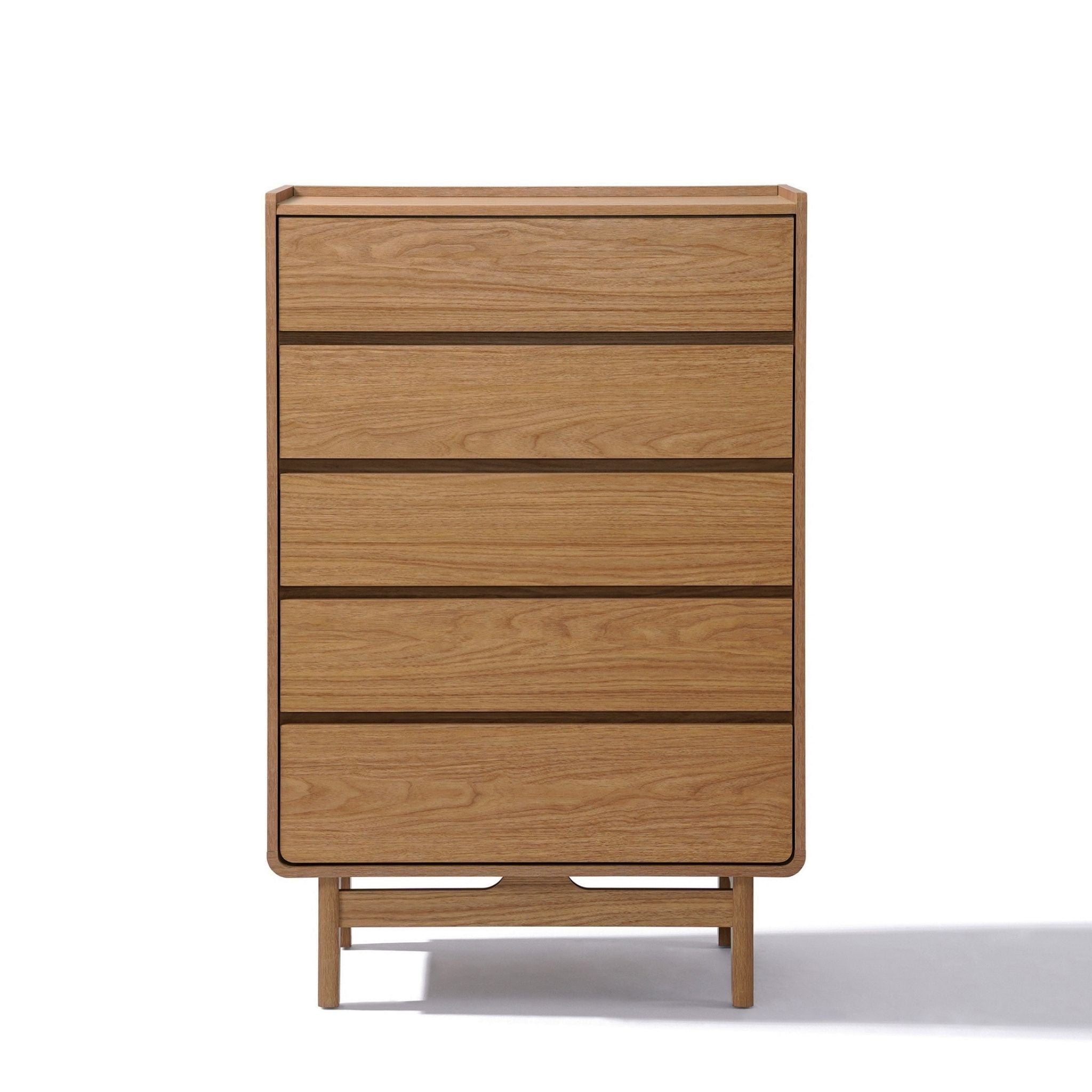 From engineered wood finishes to solid metal handles, all materials in our collection are selected with durability in mind. The Columbia 5-Drawer Bachelor Chest offers vertical storage for compact rooms, while maintaining a sleek engineered wood design that’s easy to clean and resistant to everyday wear.