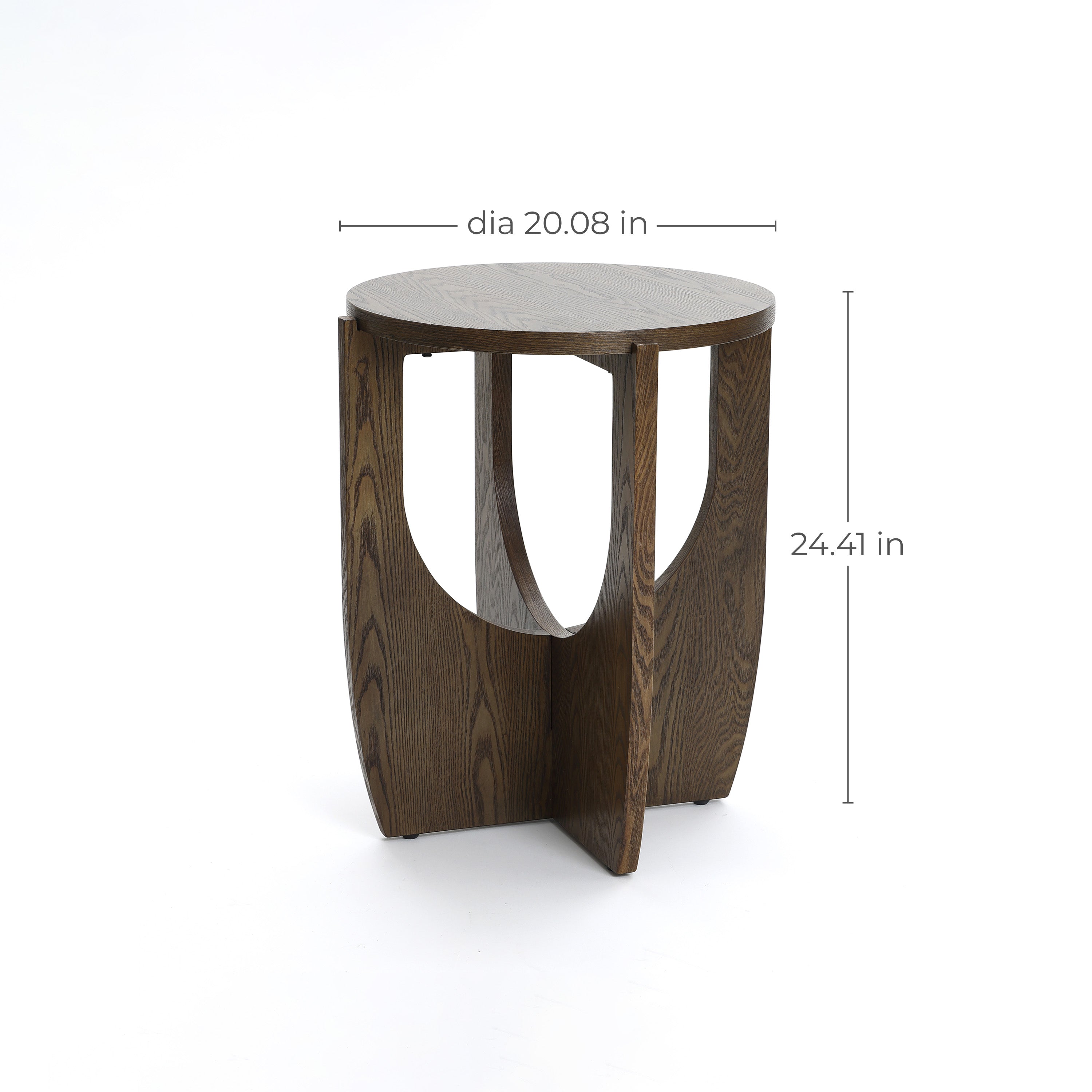 Elevate your home with this walnut side table, designed to blend mid-century elegance with modern functionality. The smooth walnut veneer finish adds warmth, while the round tabletop offers the perfect spot for morning coffee, a reading lamp, or favorite décor. Supported by a sturdy cut-out base, this round side table is both stylish and reliable, ideal for daily use. Whether placed in the living room beside a sofa, in the bedroom as a modern side table, or even in an office corner, it adds versatility to your home. Pair with other wood side table designs to create a cohesive look, or let it shine on its own as a statement piece. Bring comfort, style, and convenience to any room.